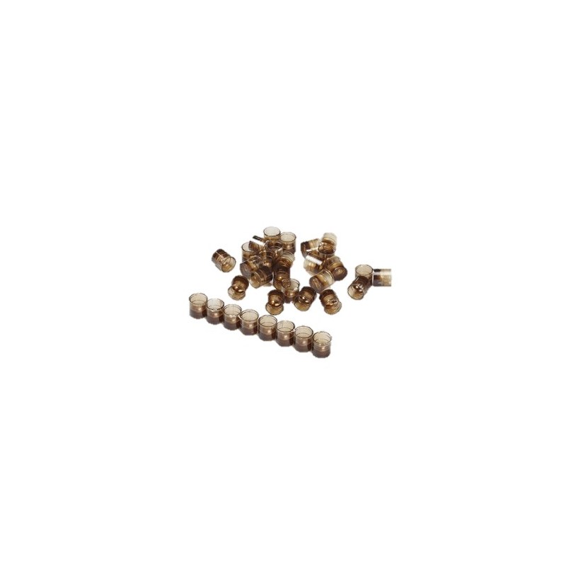 Jaula-pistón marcador de reinas de plástico. Dispone de un orificio lateral de entrada y salida para las reinas. Una vez introducidas dentro del tubo, se aproximan con el máximo cuidado de no aplastarlas al extremo enrejillado para marcarlas con el color o número deseado.