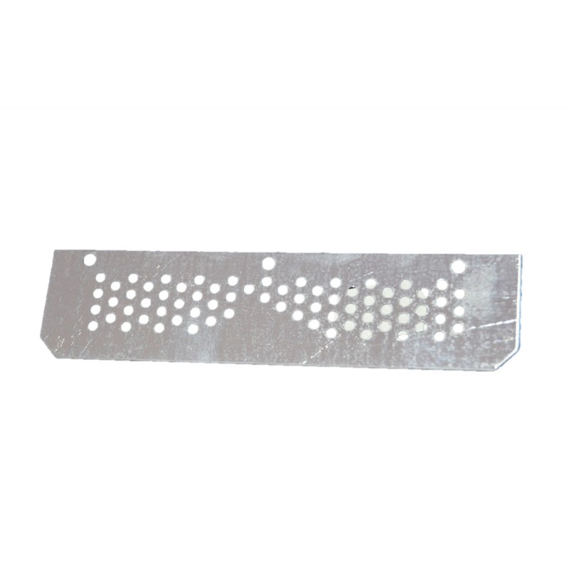 Piquera metálica en ángulo, por un lado dispone de multientradas (25) para epoca de primavera-verano y en el otro lado tiene 5 huecos como entrada para otoño-invierno Sirve tanto para colmenas Langstroth como Dadant. Dimensiones: 36 x 428 mm.  La altura de ambos lados es de 23 mm.