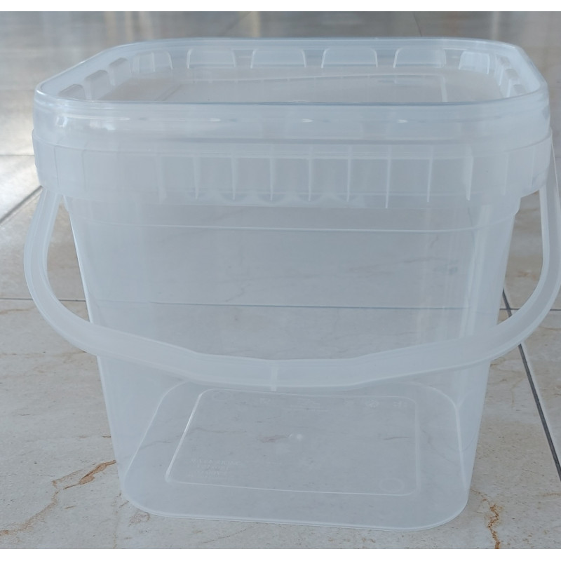 Cubo de plástico transparente, para uso alimentario, con capacidad para 3,5 litros.