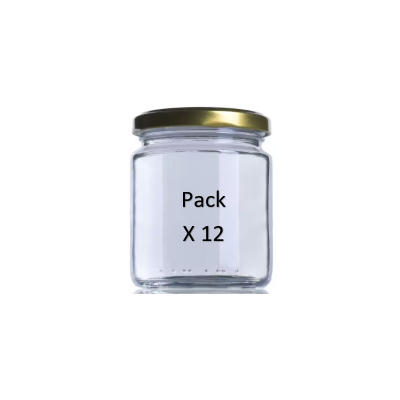 Tarro de vidrio con capacidad para 370 ml. Especial para conservas. Con boca rosca para sistema de cierre Twist Off 77 (incluida en el precio TO77 blanca con botón) Pack de 12 unidades con tapa TO77 blanca. Para pedidos superiores a 30 cajas solicitar presupuesto para calcular envíos por palet. abeyareina@gmail.com /985.555.137