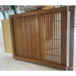 Incluye piquera reversible, en un sentido quedará semi abierta para permitir el paso de las abejas y por el otro lado está perforada para permitir el paso de aire pero no permite la salida de las abejas (Ideal para el transporte)